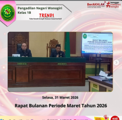 Selasa, 31 Maret 2026 bertempat di Ruang Sidang Cakra Pengadilan Negeri Wonogiri, telah dilaksanakan Rapat Rutin Bulanan Periode Bulan Maret 2026.
