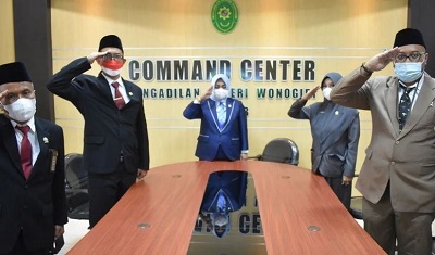 Hari Rabu pagi, tanggal 17 Agustus 2022, Wakil Ketua Pengadilan Negeri Wonogiri Kelas 1B, Ibu Titis Tri Wulandari, S.H, S.Psi., M.Hum beserta Hakim-Hakim dan Panitera Pengadilan Negeri Wonogiri Kelas 1B menghadiri secara virtual Upacara Pengibaran Bendera Merah Putih dalam rangka Peringatan Detik-Detik Proklamasi Kemerdekaan Republik Indonesia ke-77 di halaman Istana Merdeka, Jakarta.