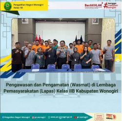 Pada hari Selasa, tanggal 27 Mei 2025, Hakim Pengawas dan Pengamat (Kimwasmat) Pengadilan Negeri Wonogiri, Ibu Vilaningrum Wibawani, S.H, M.H, melakukan Pengawasan dan Pengamatan (Wasmat) di Lembaga Pemasyarakatan (Lapas) Kelas IIB Kabupaten Wonogiri, didampingi Panitera Muda Pidana Bapak Mas Bambang Andri Raharjo, S.H. beserta Staf Kamiteraan Pidana